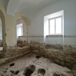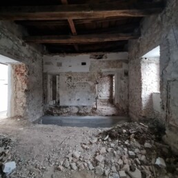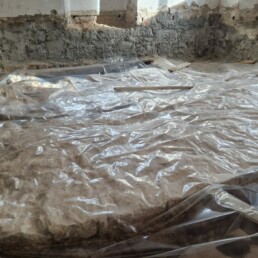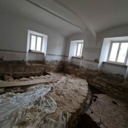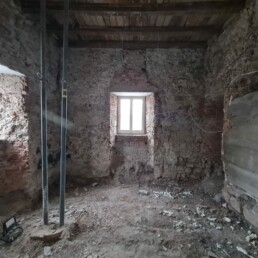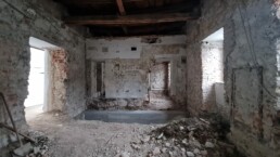 Hidrofobna bariera: Ena ključnih faz je bila izvedba zanesljive hidrofobne bariere proti kapilarni vlagi. Z namenskim nizkotlačnim injektiranjem smo ustvarili pregrado, ki dolgoročno preprečuje dvig vlage iz temeljev v nosilne zidove.