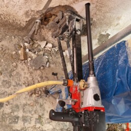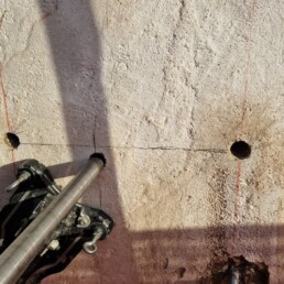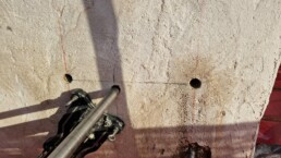 Strukturno šivanje in povezovanje vogalov: Na kritičnih spojih in vogalih zgradbe smo izvedli strukturno šivanje. V predhodno izvrtane in očiščene vrtine smo vgradili specialna jeklena sidra in jih fiksirali z visoko trdnostnimi epoksidnimi smolami. Ta metoda učinkovito preprečuje nadaljnje posedanje ali razmikanje nosilnih sten in bistveno poveča protipotresno varnost samega objekta.
