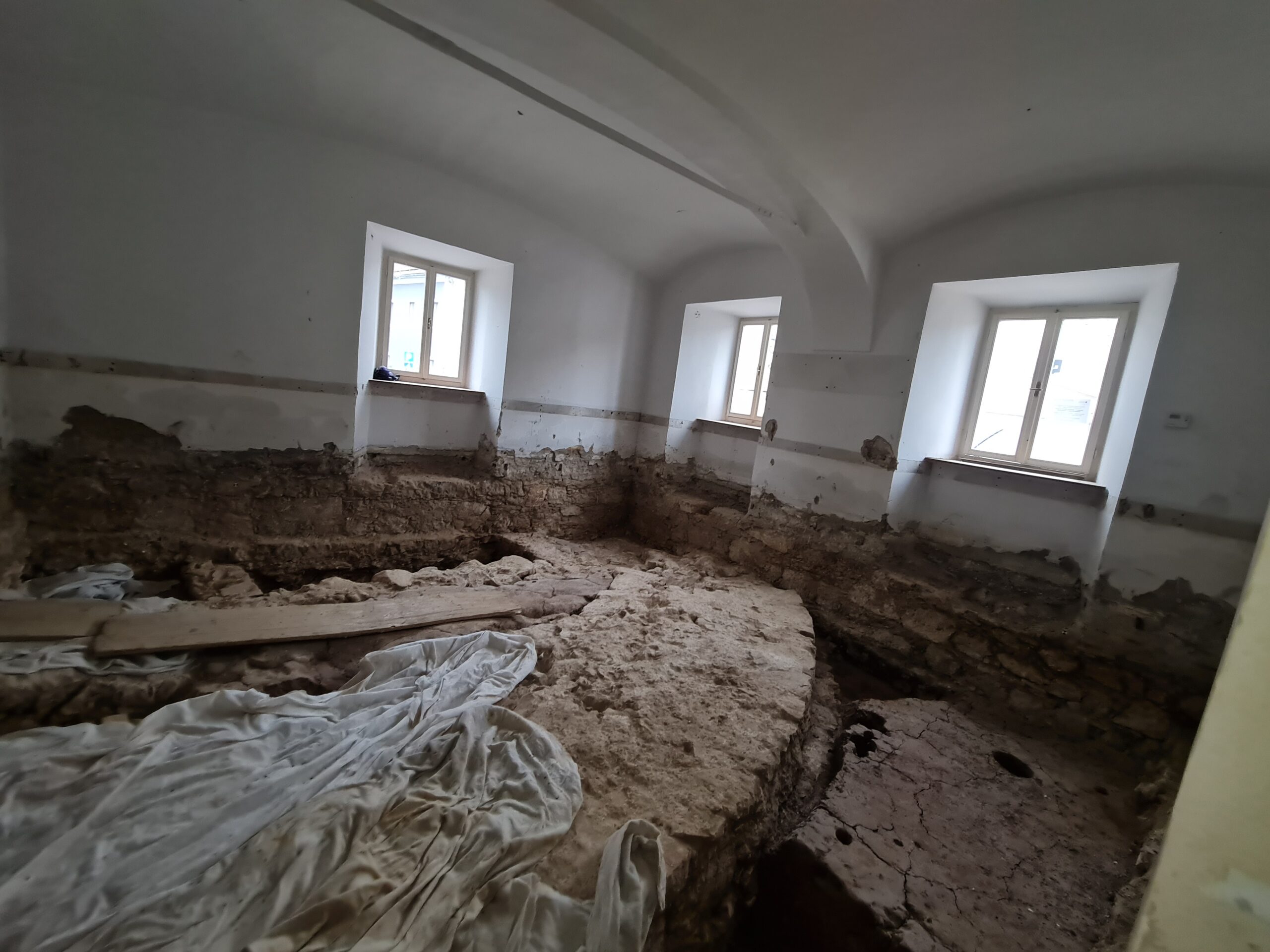 Linijsko injektiranje kamnitih zidov: Za strukturno utrditev degradiranega grajskega zidovja smo izvedli obsežno linijsko injektiranje. Postopek je zagotovil zapolnitev praznin v notranjosti zidu in ponovno vzpostavil njegovo monolitnost, pri čemer smo uporabili mešanice, kompatibilne s starimi apnenimi vezivi.