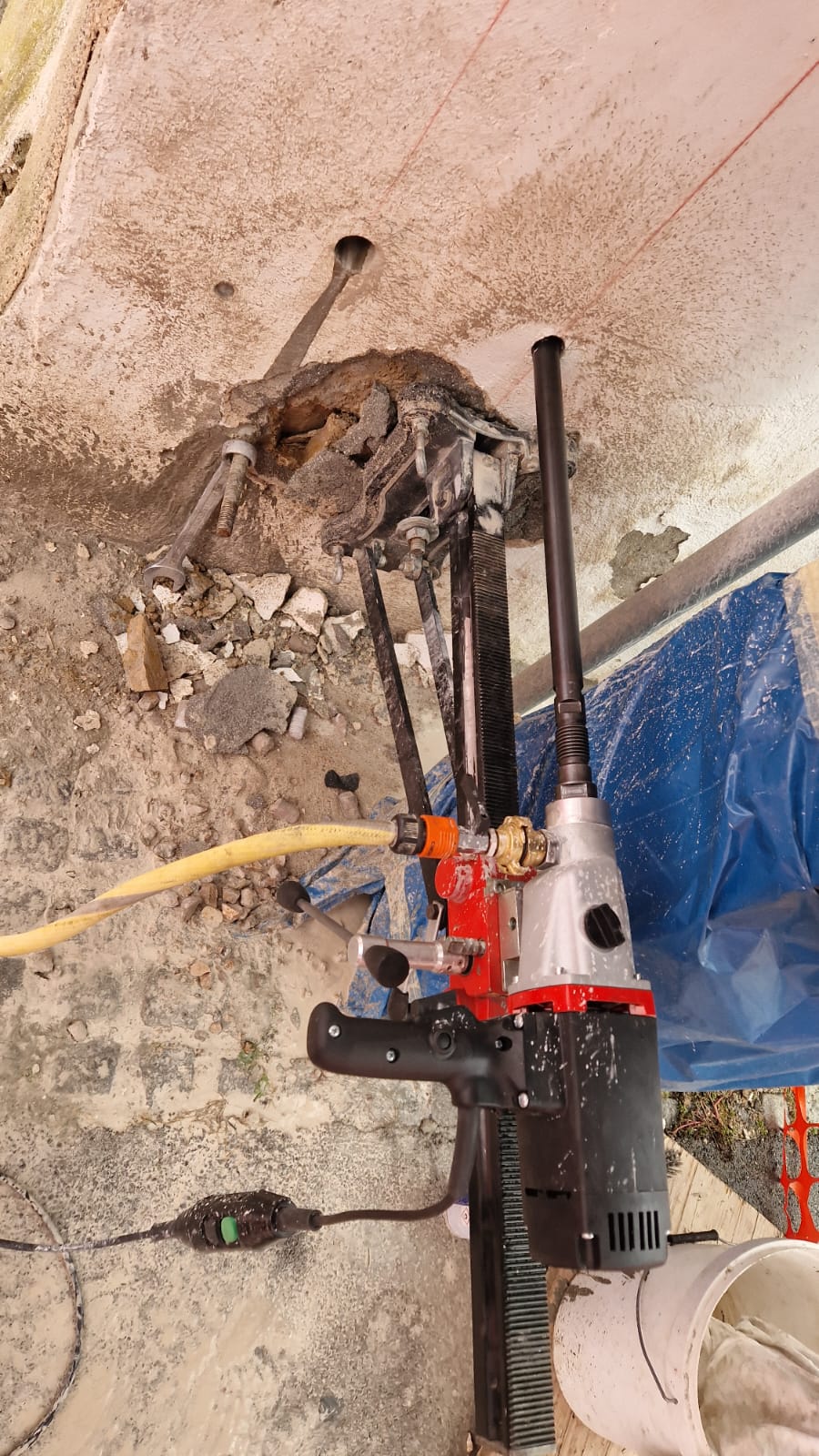 Strukturno šivanje in povezovanje vogalov: Na kritičnih spojih in vogalih zgradbe smo izvedli strukturno šivanje. V predhodno izvrtane in očiščene vrtine smo vgradili specialna jeklena sidra in jih fiksirali z visoko trdnostnimi epoksidnimi smolami. Ta metoda učinkovito preprečuje nadaljnje posedanje ali razmikanje nosilnih sten in bistveno poveča protipotresno varnost samega objekta.