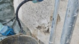 Pri konsolidaciji kamnitih in mešanih zidov se poslužujemo sistematičnega in linijskega injektiranja z namenskimi mineralnimi mešanicami, s čimer zidovju povrnemo homogenost in nosilnost. Kadar se soočamo z vdiranjem vode v konstrukcijo, uporabljamo visokotlačno injektiranje s poliuretanskimi smolami. Tega ne izvajamo zgolj linijsko, temveč izvedbo prilagodimo situaciji in smolo pogosto injiciramo lokalno, po posameznih gnezdih, da ustvarimo učinkovito in trajno vodoodbojno bariero. Na področju strukturnih sanacij, kjer je ključna statična povezanost in prenos nateznih ter strižnih sil – predvsem pri sanaciji razpok in lepljenju betona – pa izvajamo zahtevna injektiranja z epoksidnimi smolami.