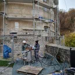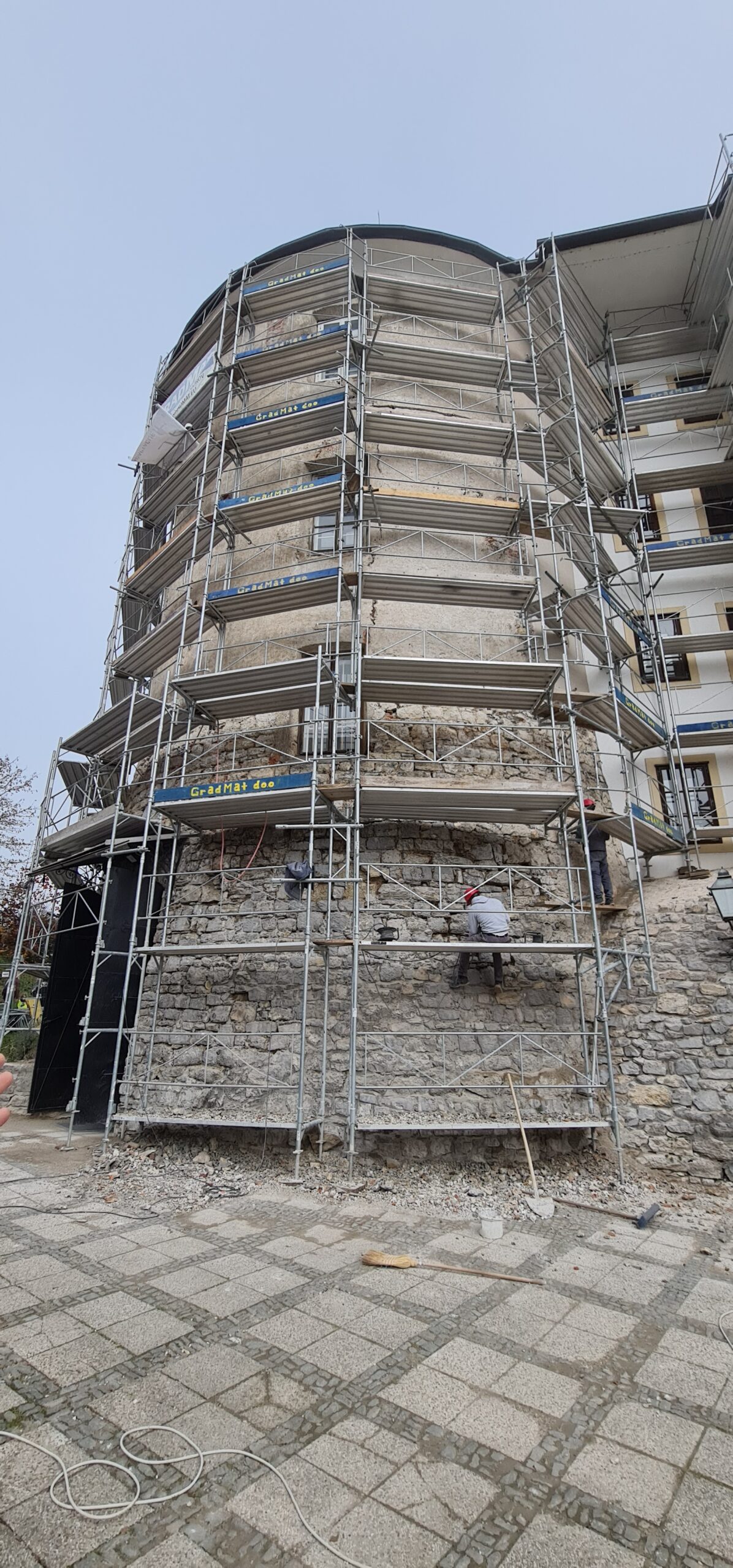 Pri sanaciji tako obsežnih zgodovinskih kompleksov do izraza pridejo naše dolgoletne izkušnje s področja specialnega gradbeništva. Čeprav pri prenovah gradov pogosto rešujemo tudi težave s kapilarno vodo skozi sanacijo vlage ali pa izvajamo utrjevanje temeljev, smo se pri Škofjeloškem gradu strogo osredotočili na statično povezovanje oslabljene konstrukcije in ciljano injektiranje zidov.