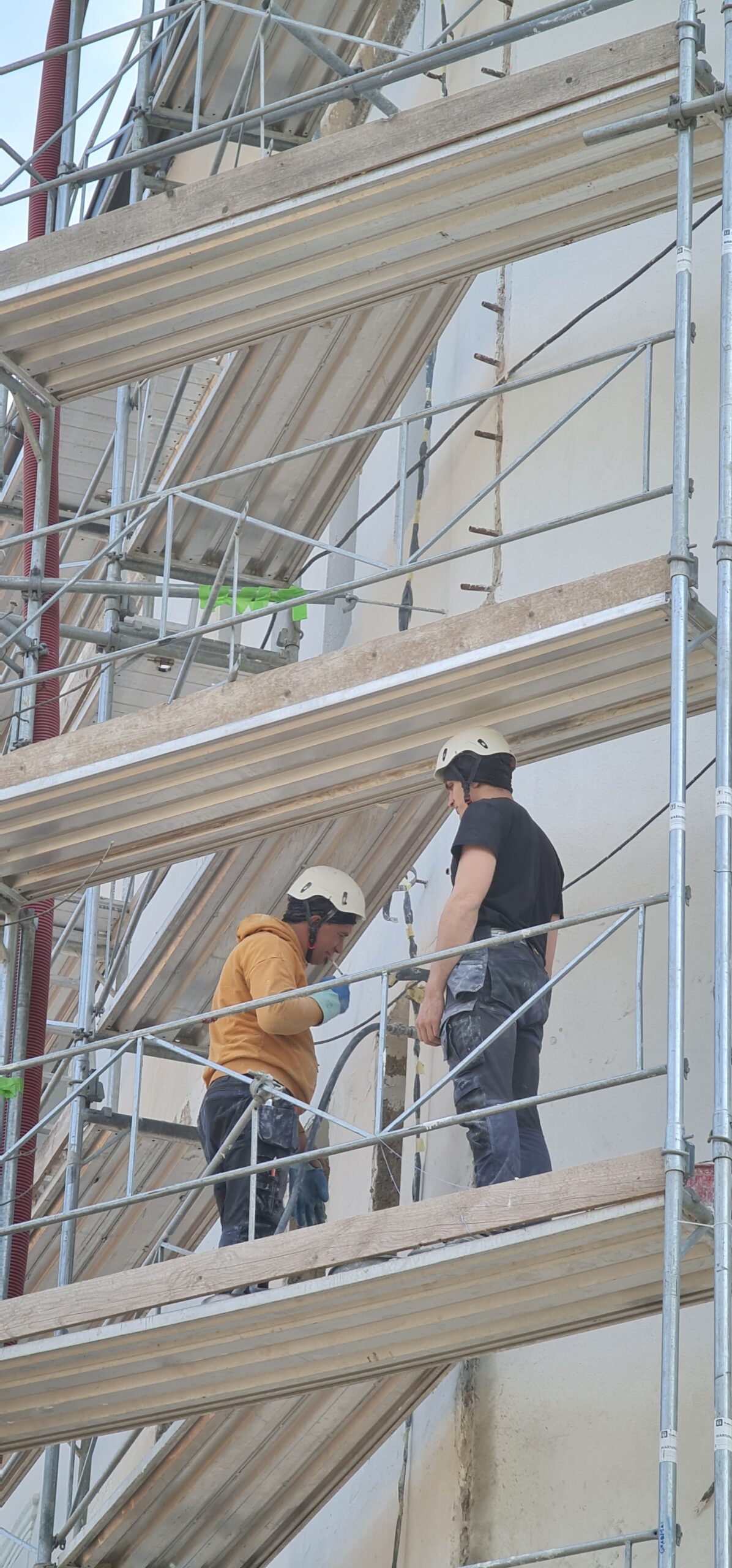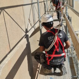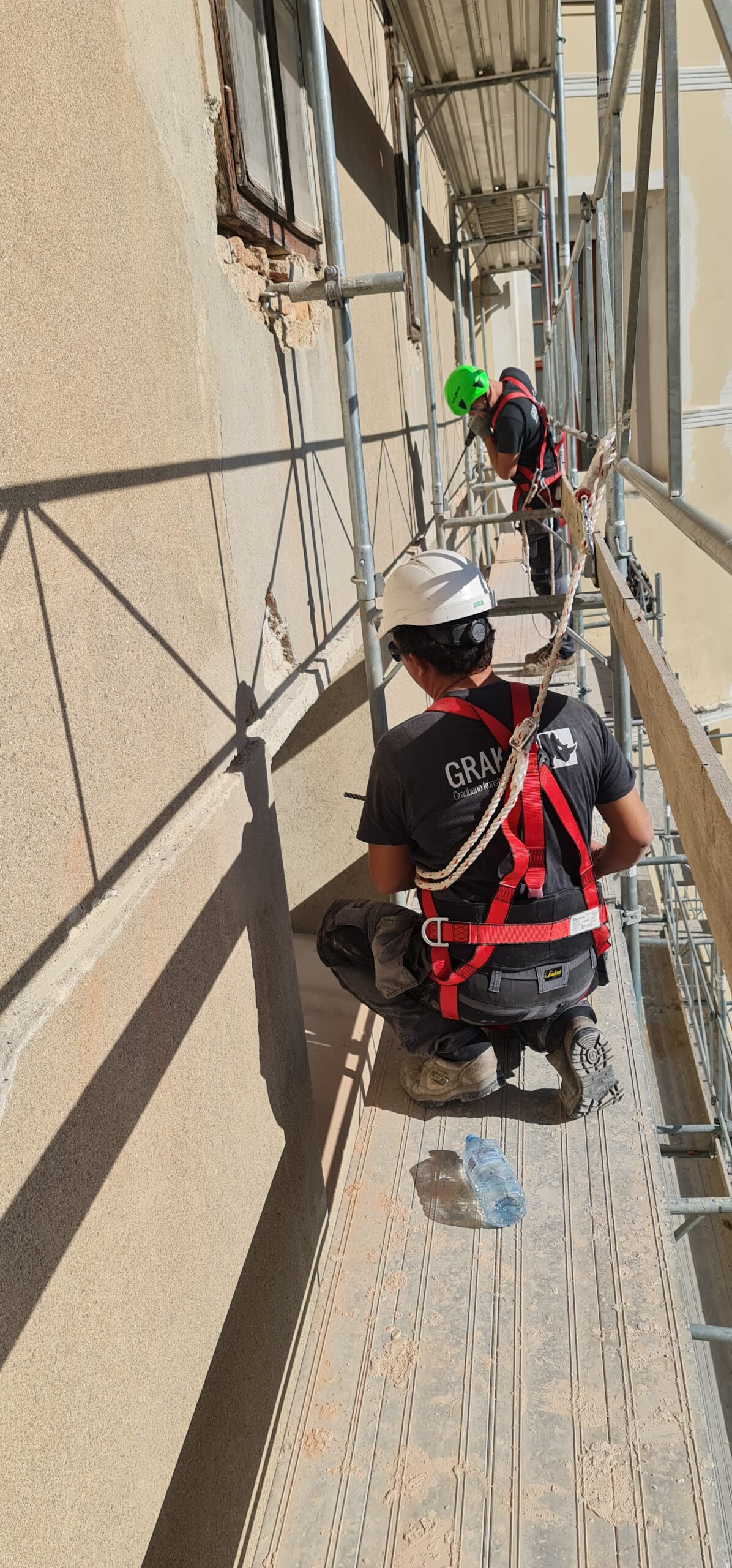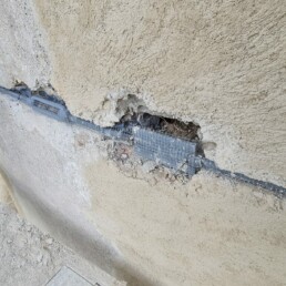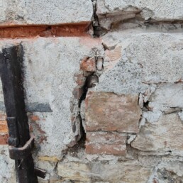 Šivanje vogalov: Strukturno šivanje vogala na severnem traktu je bilo izvedeno s pomočjo prefabriciranih jeklenih sider, izdelanih iz rebrastega betonskega jekla pod prilagojenim kotom. S pomočjo epoksidne smole smo ta sidra vgradili in utrdili vse do globine enega metra, kar zagotavlja trajnost in varnost pred potresnimi obremenitvami.