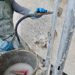 Linijsko injektiranje: Za zagotavljanje strukturne celovitosti smo izvedli ciljano sanacijo razpok na južnem stolpu z uporabo visoko kompatibilne zgodovinsko ustrezne injekcijske mešanice.